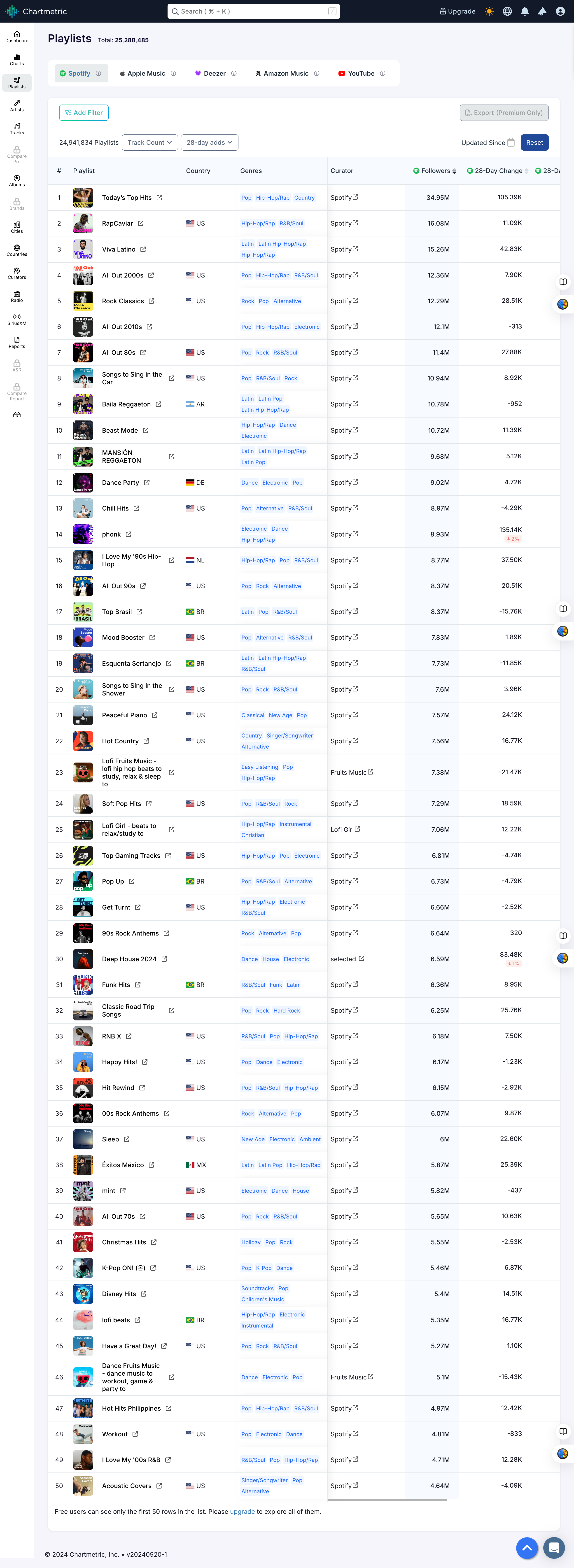 As a music label manager, I struggled to navigate the cluttered interface of Chartmetric. The overwhelming amount of playlist data in a dense, table-like format made it hard for me to quickly identify key insights or focus on what mattered most. Without visual aids or clear navigation, I spent too much time sorting through information, which slowed down my decision-making process.