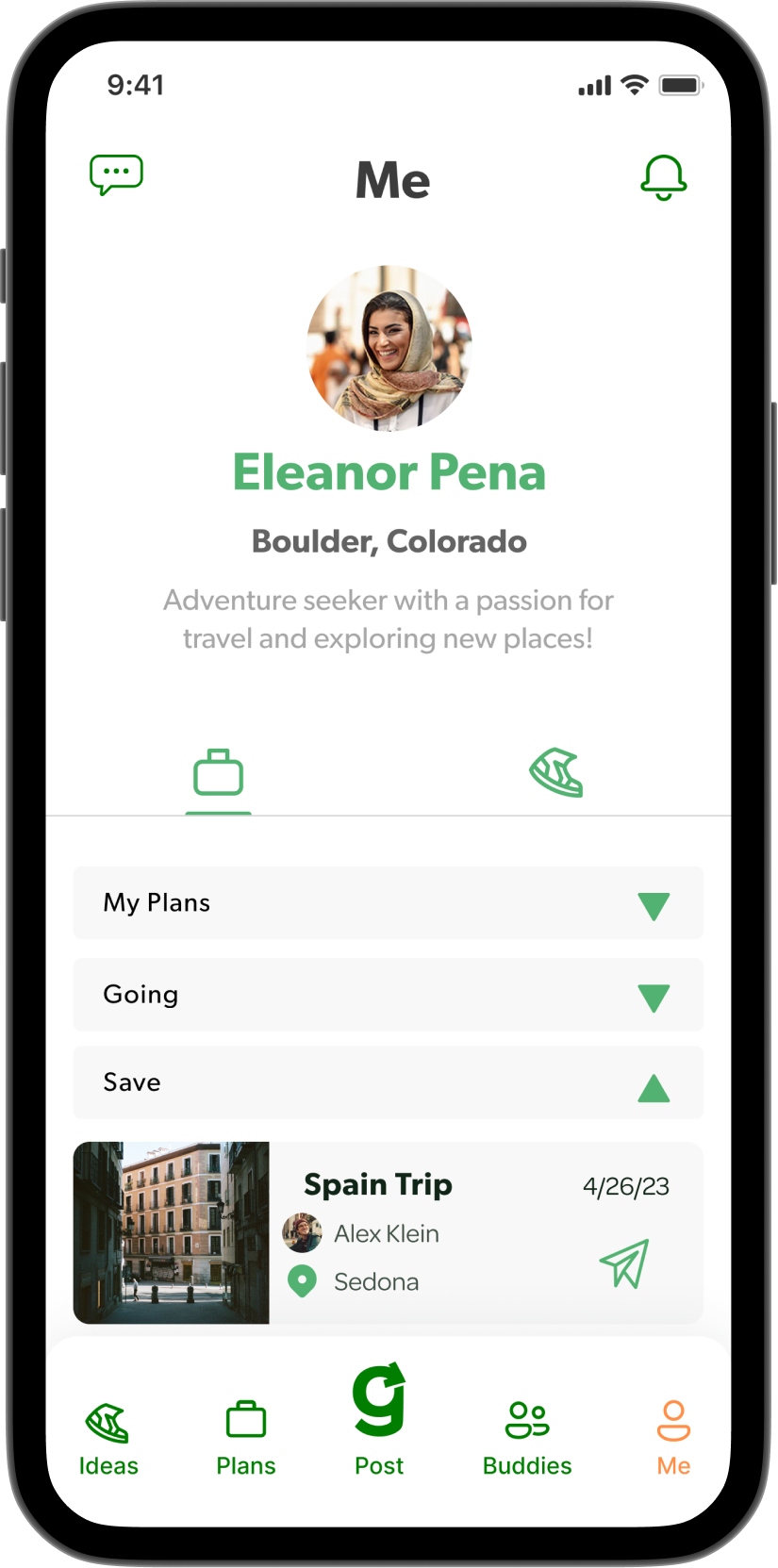 GoBuddy is an app to post your trip and activity ideas for your close friends to see. You can browse the feed or sort postings by type, duration, dates, and location to note those of interest. Whether planning a summer of backpacking abroad, exploring a city for the weekend, or going to a baseball game after work, GoBuddy eliminates the hassle of flooding text chats or Facebook groups with plans. Choose the outings that are compatible with your schedule and interests, grab your Buddy, and Go!