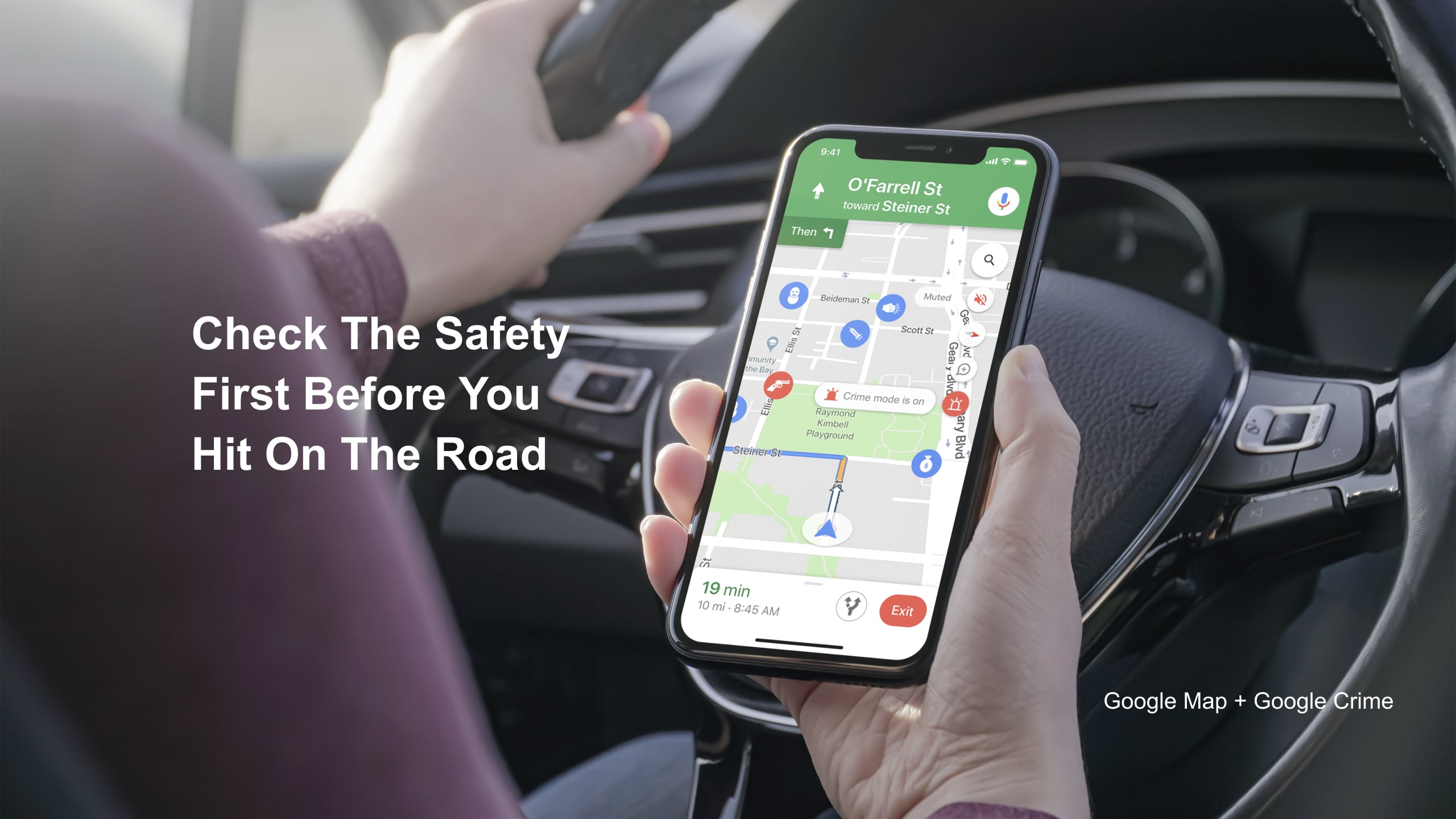 wayfinding software with the largest market share at present. This project is a rumination on the possibility of Google Maps, adding an area crime rate function to their App. It would be helpful for people to have a clear understanding of the safety of their destination to improve the safety of their daily lives.
